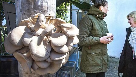 Hugo Holscher, voorzitter van het ondernemerscollectief HeemSteeds Duurzamer licht toe: ‘Het idee is: zamel lokaal koffiedik in, gebruik dat als grondstof voor de kweek van oesterzwammen, verkoop die oesterzwammen weer in Heemstede en verwerk het koffiedik uiteindelijk tot verbeterde compost. Een duidelijke win-win op alle maatschappelijk trends. We dragen bij aan de circulaire economie (geen afval meer), verbinden mensen via eten en drinken en oesterzwammen spelen een grote rol in de eiwittransitie. Vanaf begin 2020 wordt ook de Hartekamp Groep bij het project betrokken. Cliënten van Hartekamp hebben een afstand tot de arbeidsmarkt en kunnen zo toch een waardevolle bijdrage leveren.’